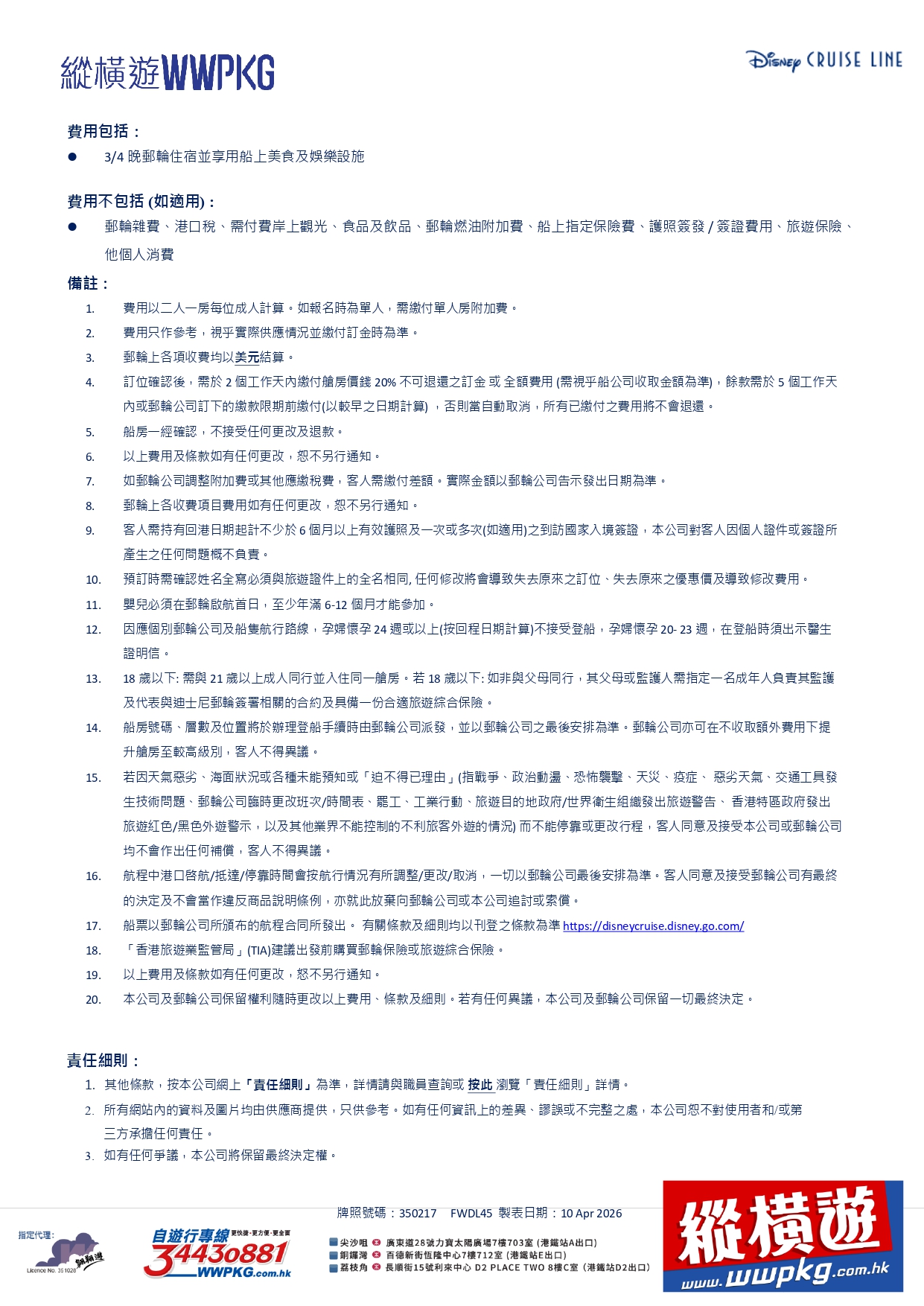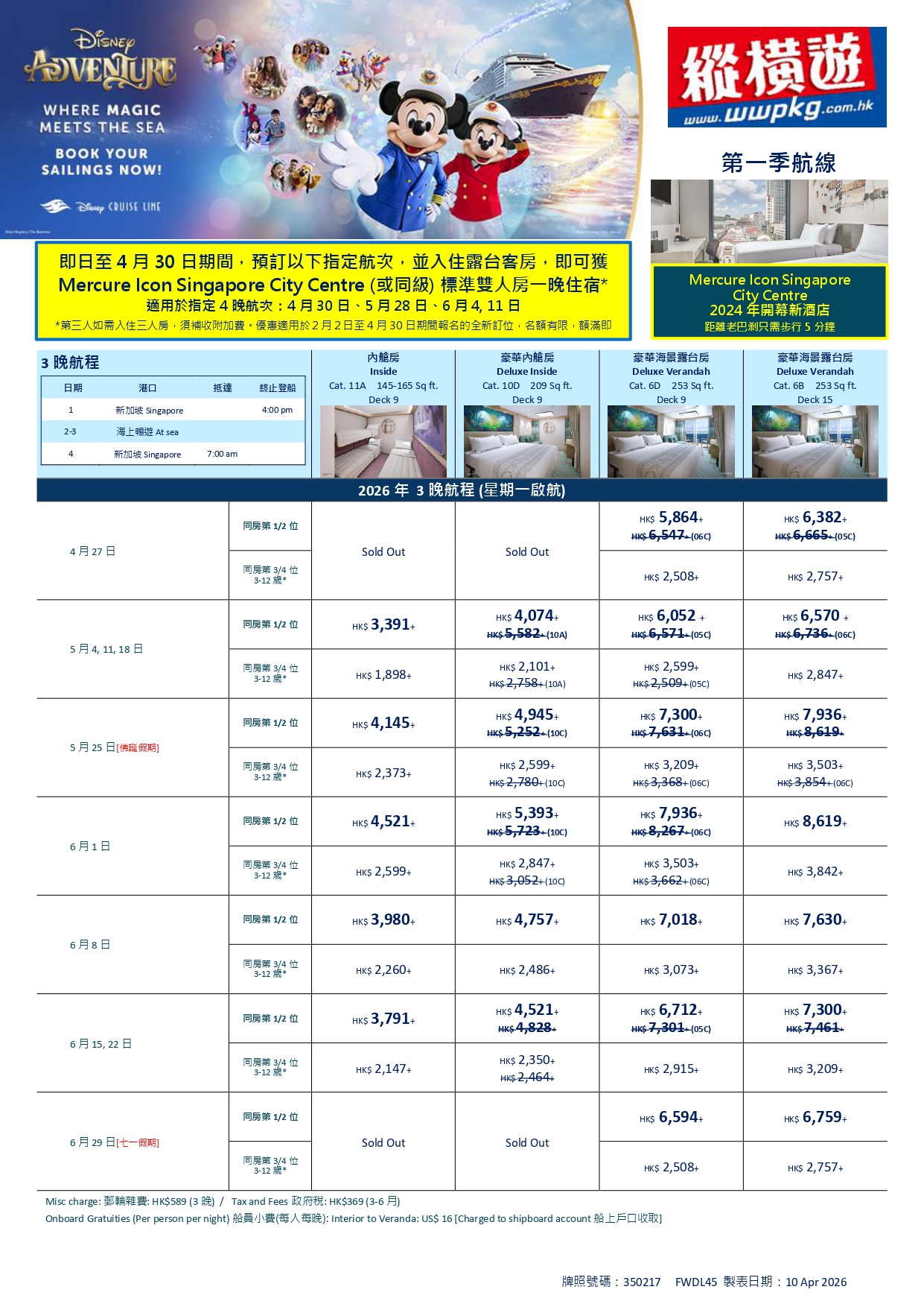 迪士尼探險號 Disney Adventure . 3晚新加坡之旅船票 (2026年4-12月 逢星期一啟航)