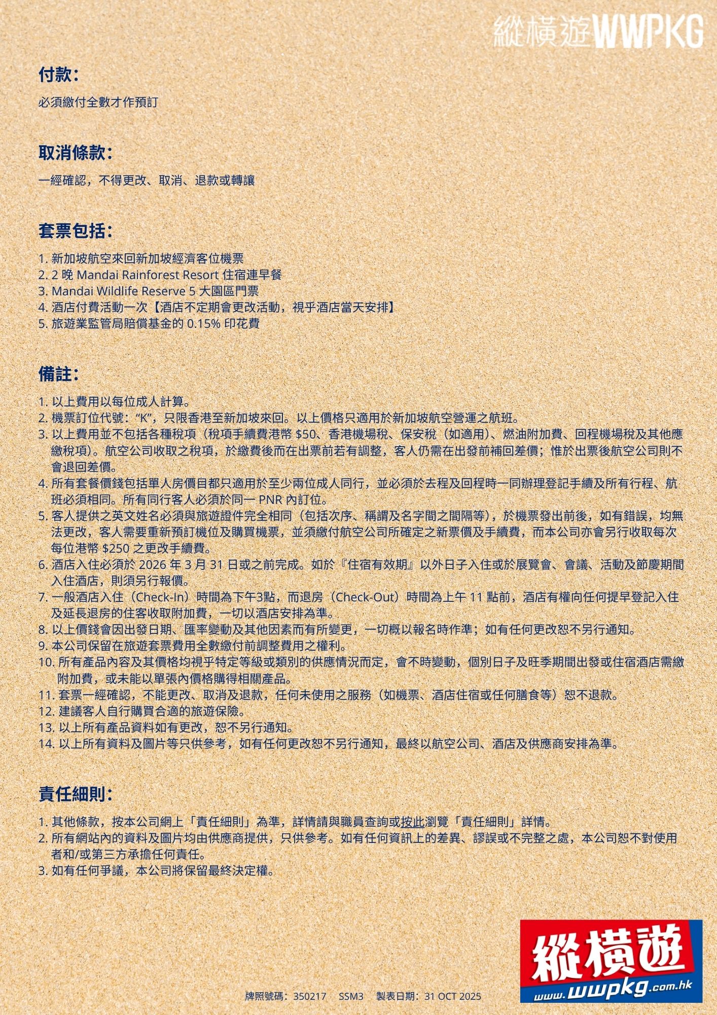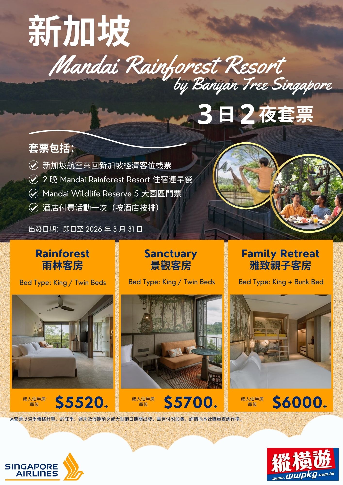 2) 2 晚 Mandai Rainforest Resort 住宿連早餐