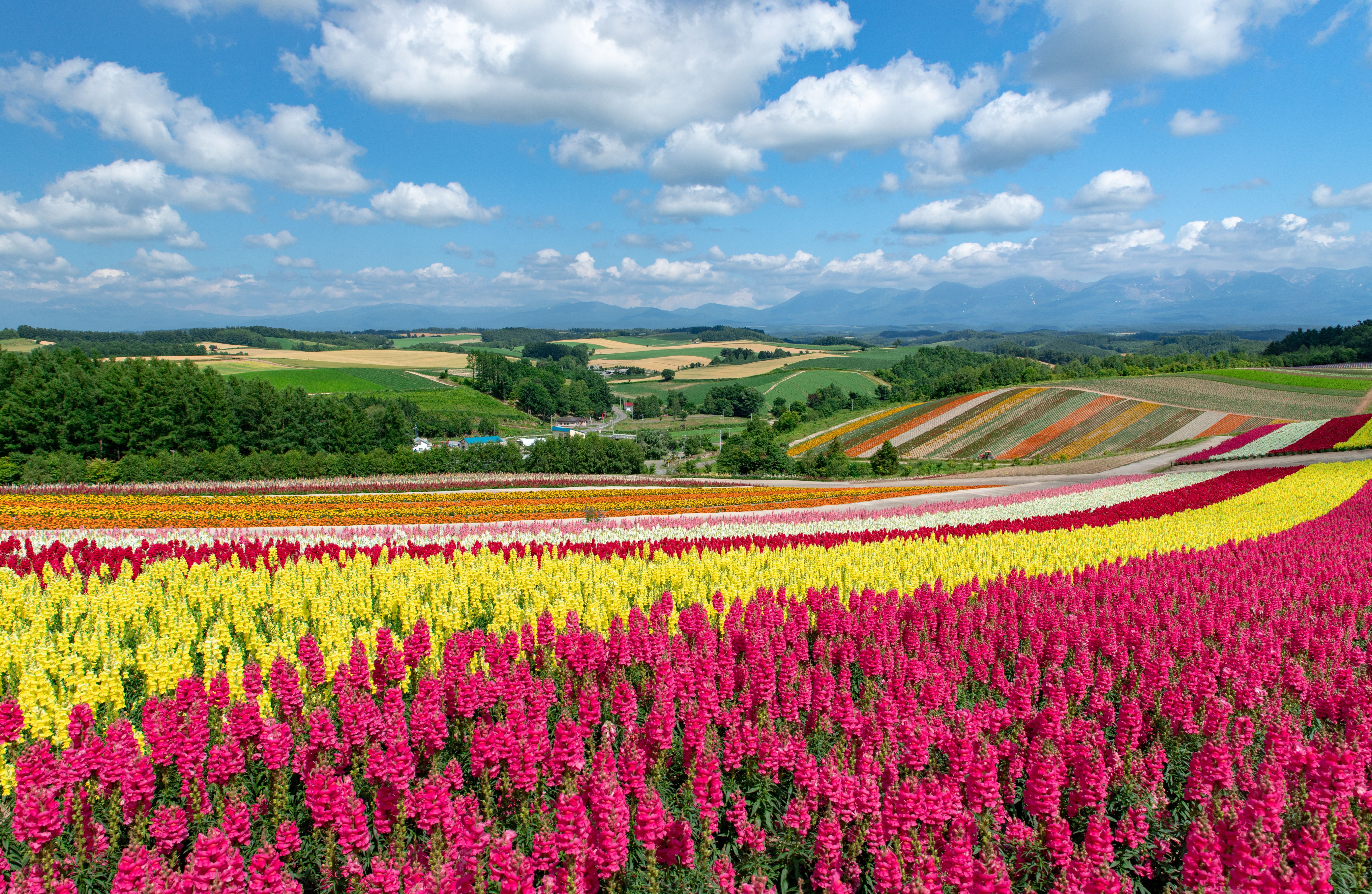 7月是北海道夏季的靈魂所在。富良野和美瑛地區的廣闊花田,尤其是富田農場,薰衣草、罌粟花、向日葵等七彩花卉交織出令人屏息的畫面。夏季的北海道旅遊往往圍繞著這片薰衣草夢幻展開。