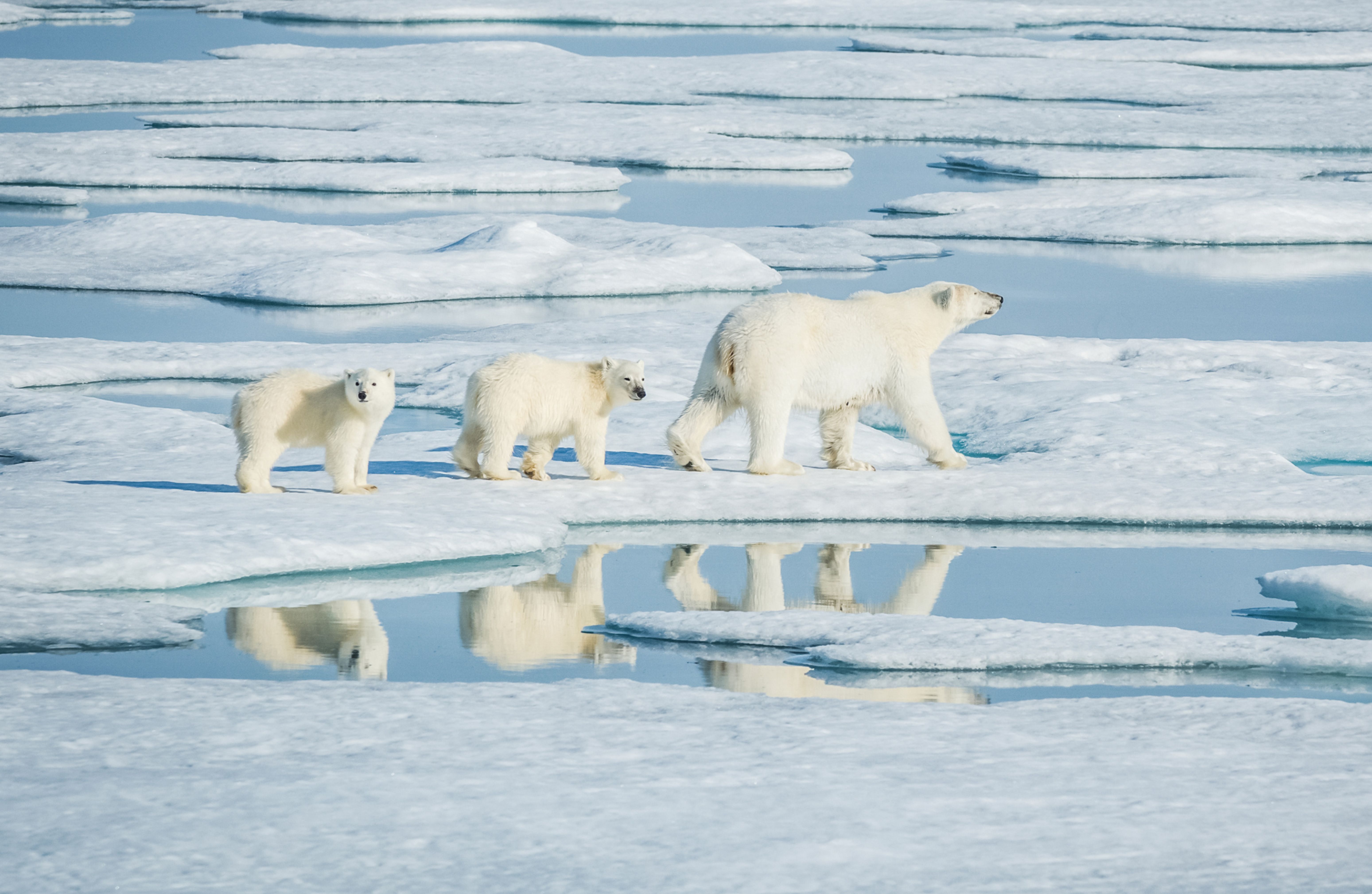北極熊是體型最大的陸上肉食性動物,直立時身高可超過2.8米,體重可達600公斤。這些白色巨獸行動敏捷,嗅覺比獵犬還靈敏,可以聞到數公里外的海豹氣味。在北極旅行團中,親眼目睹瀕危的北極熊是許多人的終極夢想。
