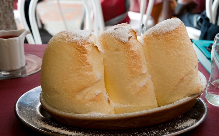 薩爾斯堡鬆糕是莫札特故鄉薩爾斯堡最具代表性的甜點,外型壯觀且充滿象徵意義。這道甜點由蛋白霜烤製而成,三座蓬鬆高聳的球體造型象徵著環繞薩爾斯堡的三座山峰,展現濃厚的在地特色。口感如雲朵般輕盈細緻,入口即化,底部通常鋪有酸甜的莓果醬,與綿密的蛋白霜形成完美對比。由於這道甜點必須現點現做以保持最佳口感,通常需要等待二十分鐘以上,且份量相當驚人,建議兩至三人共享較為適宜。品嚐薩爾斯堡鬆糕不僅是味覺享受,更是體驗奧地利文化與地理風情的絕佳方式。