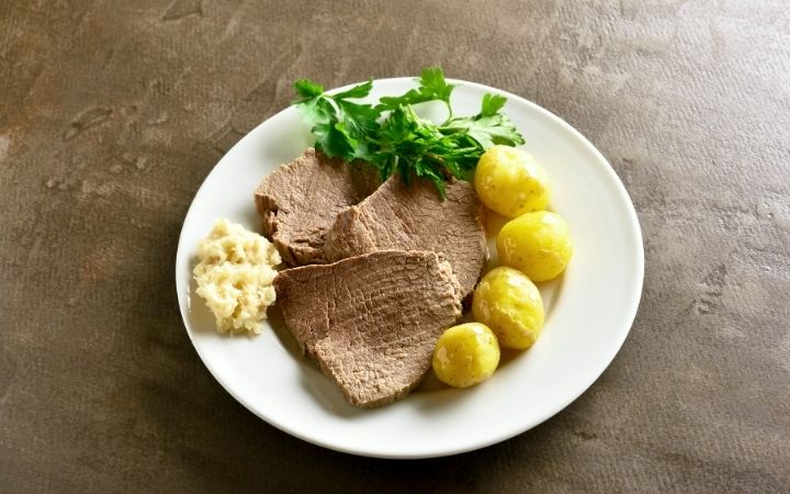 曾是奧皇法蘭茲·約瑟夫一世的最愛, 也是奧地利經典料理。這道菜看似簡單如清湯掛麵,實則講究火候功夫,以優質牛臀肉搭配根莖類蔬菜慢火精燉而成。品嚐時極具儀式感:先喝清澈的牛肉湯頭,再品嚐軟嫩的牛肉片,通常會佐以蘋果辣根醬或韭菜奶油醬,帶來豐富的味覺層次。
