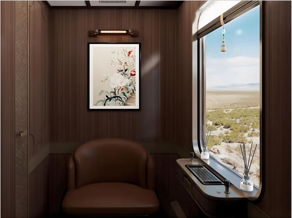 2026年最新的設計趨勢,強調「文化在地化」的深度融合。車廂內隨處可見艾德萊斯綢的圖騰屏風、西域風情的手工掛毯,現代極簡線條與千年絲路美學在此交融。而真正讓這列火車超越硬體的,是「一對一管家服務」的軟實力——從登車那刻起,專屬管家會記住你的飲食偏好、協助打理行李、安排每一站的岸上行程接駁,確保整趟旅程毫無後顧之憂。