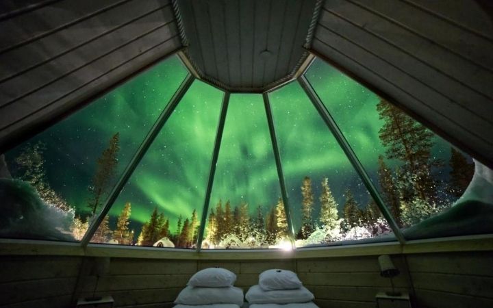 2. 獨一無二的玻璃屋(Glass Igloos):芬蘭是玻璃屋飯店的發源地。想像一下,躺在溫暖的被窩裡,透過全景玻璃屋頂,仰望漫天星空與極光飛舞,這是其他國家難以複製的奢華體驗。
