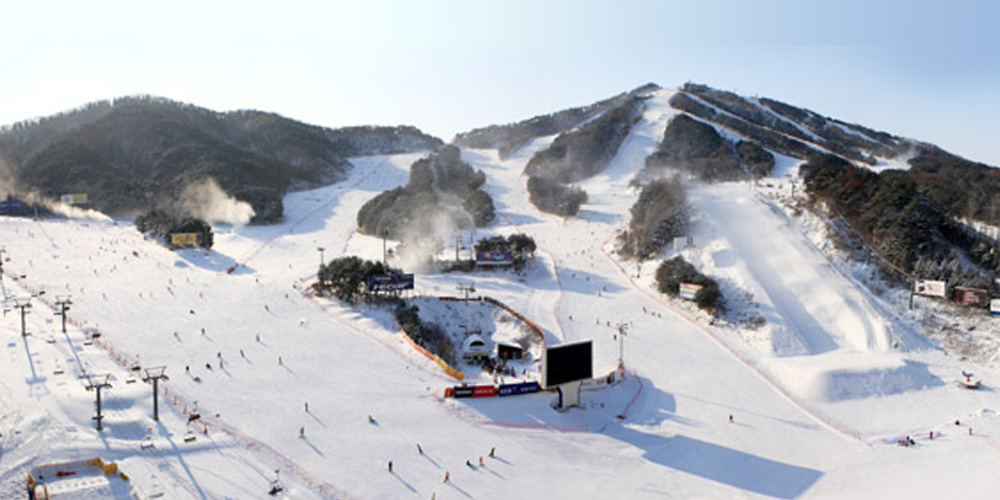 橡樹谷滑雪場位於江原道原州,以其自然美景和寧靜的環境吸引著追求質感的滑雪愛好者。這裡的9條雪道雖然數量不多,但每一條都經過精心設計,特別適合中高級滑雪者。滑雪場周圍被橡樹林環繞,滑雪時可以欣賞到壯麗的自然景觀。
