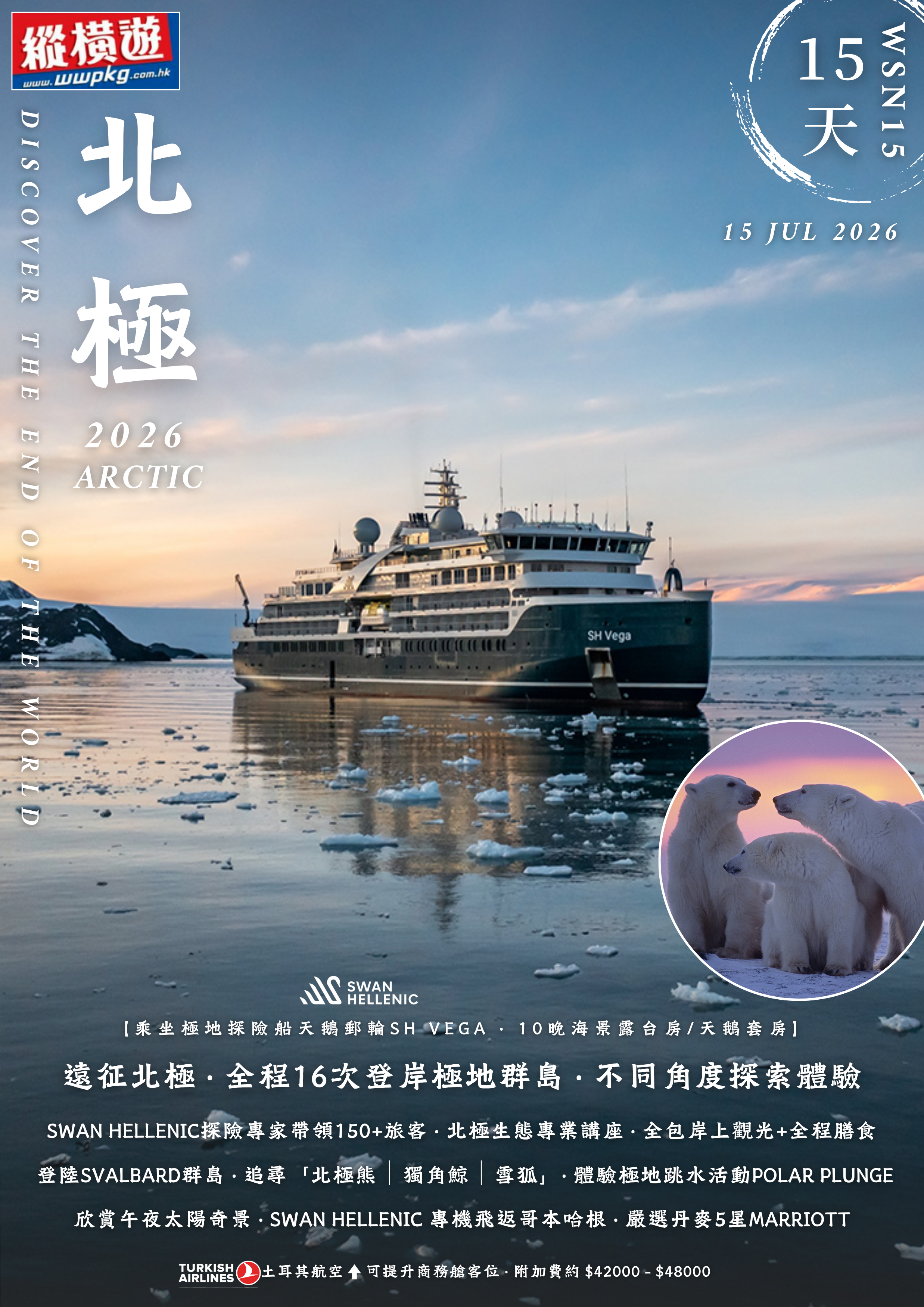 [乘搭豪華極地郵輪] SWAM HELLENIC,天鵝郵輪織女星號SH VEGA 10晚住宿,充足時間走訪極地