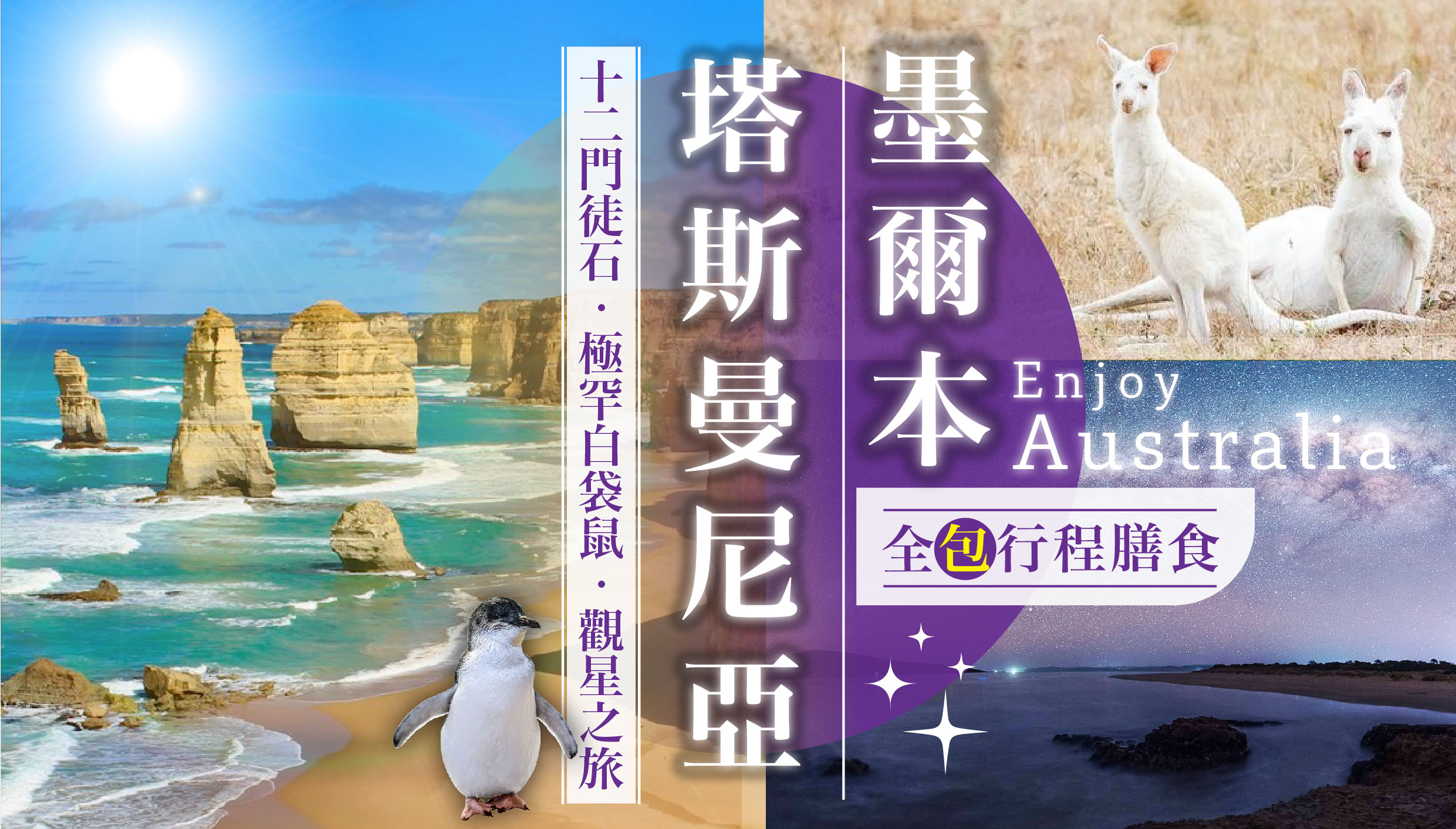 [觀星美餚+墨爾本] 純淨全覽.荷伯特.比千魯.朗塞斯頓.[南北一線] 布魯尼島 .4大體驗 [探訪全球罕見白袋鼠/塔隆加海灘觀星/夜觀藍企鵝回巢/大洋路十二門徒石] .15大人氣行程.獵犬黑松露之旅.SS龍蝦鮑魚「海鮮誘惑遊船之旅」 廚師帽酒莊JC.2晚5星MARRIOTT [全包行程及膳食]