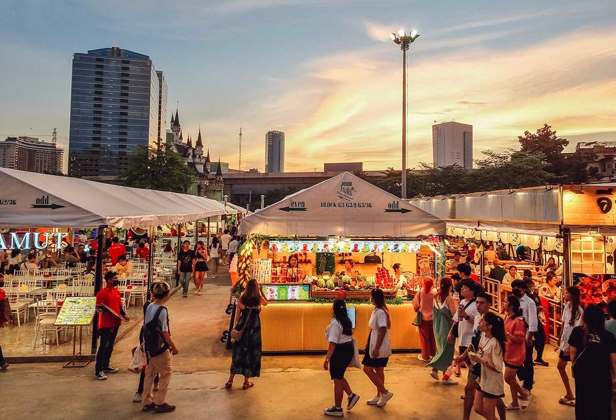 【喬德夜市】 以泰式美食、時尚服飾、文創和手工藝品而聞名,設有城堡、古董車和熱氣球的夢幻場景打