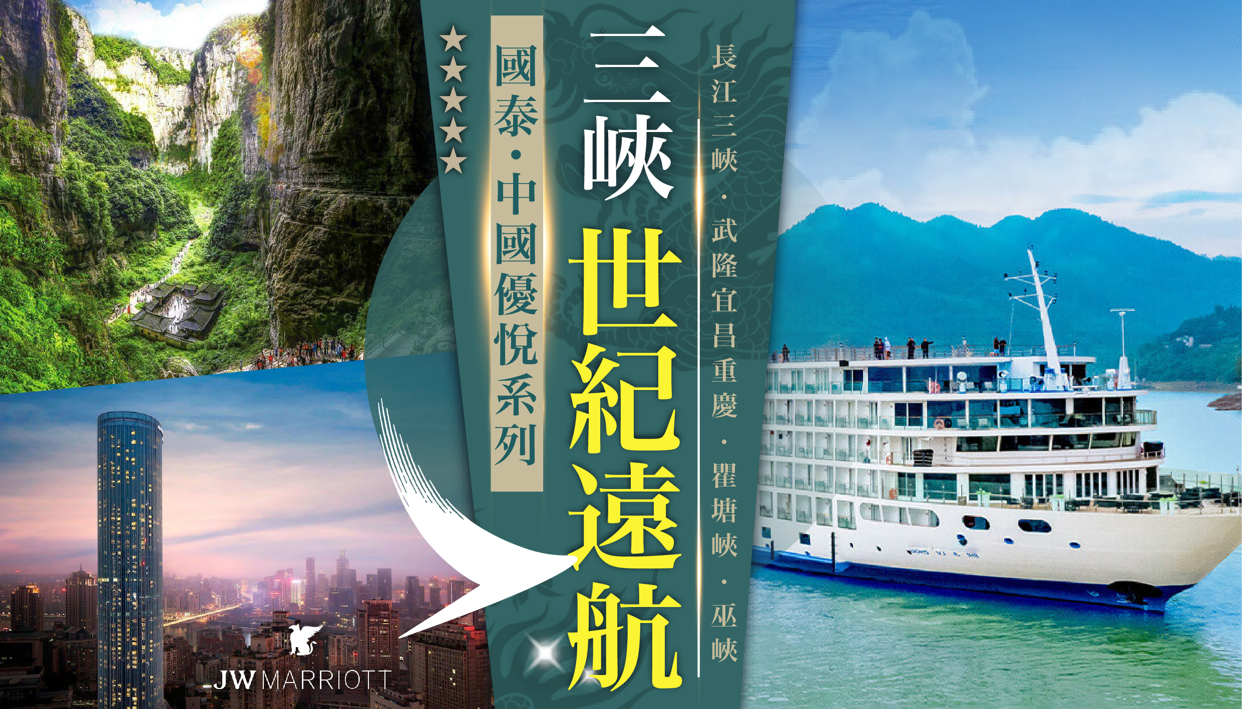[8天] [世紀遊輪] 長江三峽遠航號 [瞿塘峽.巫峽.西峽].武隆宜昌.重慶.江景露台房.全球第一 [三峽升船機].碼頭行李搬/托運.電瓶車+環保車 [天生三橋奇景].小火車 [仙女山國家森林公園].小船 [神女溪].遊輪自助餐.黑珍珠美饌 [山茶四季].2晚國際5星 [全包行程]