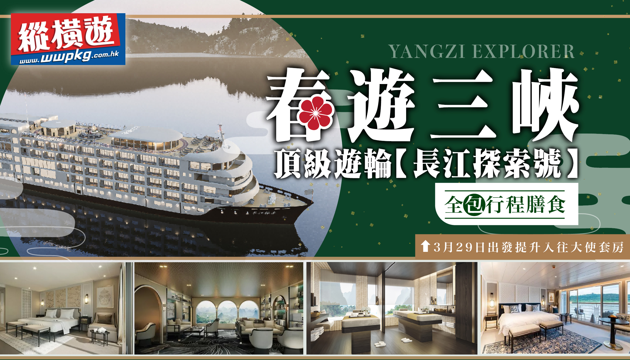 4晚探索號宿泊🚢.3月29日出發提升入往「大使套房」.長江三峽 [巫峽+西陵峽+翟塘峽].自選岸上觀光靈活自主.濱江公園.昌州古城.李子壩輕軌穿樓觀景臺.磁器口古鎮.夜遊洪崖洞建築群 ⚡️早鳥優惠碼AP2024最高減$300
