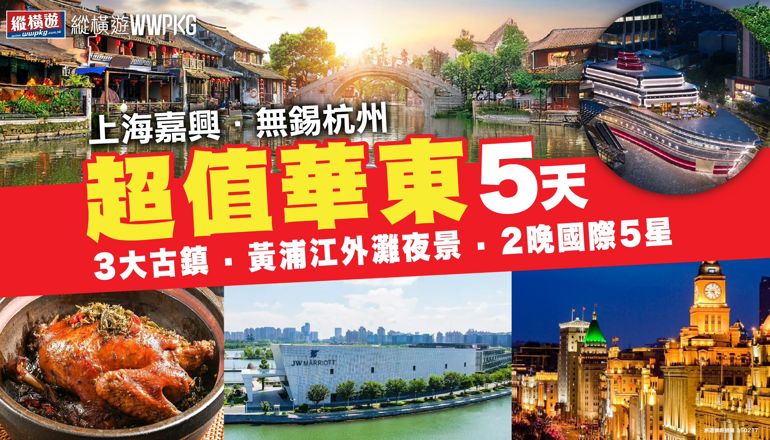 ✈️東方航空 ⚡不設早鳥優惠.上海國際5星東方美谷JW萬豪酒店+平湖卓越鉑爾曼酒店+無錫&杭州國際品牌酒店.蠡湖中央公園.錢塘江遠眺六和塔.杭州地標 [日月同輝].三黃雞.2大精彩購物廣場