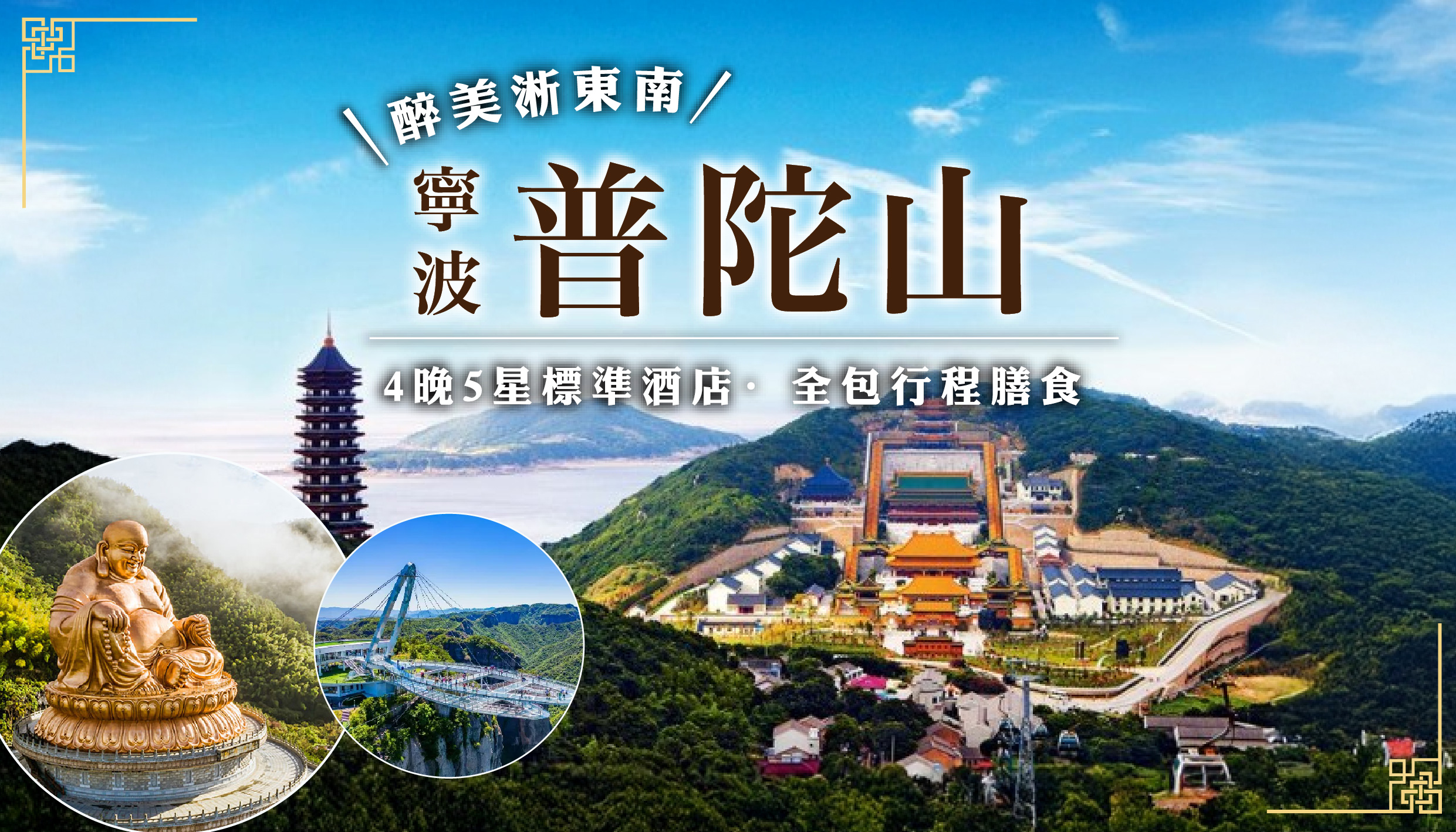 [6天] [醉美淅東南] 寧波.乘船赴中國佛教四大名山之一 [普陀山].24年世界佛教論壇主會場 [彌勒聖壇] 包上金頂.普陀素齋.佛教五大名山 [雪竇山].國家5A級 [神仙居] 包登山雲梯+纜車.中國著名古剎之一 [國清寺].4晚5星標準酒店 [全包行程膳食]