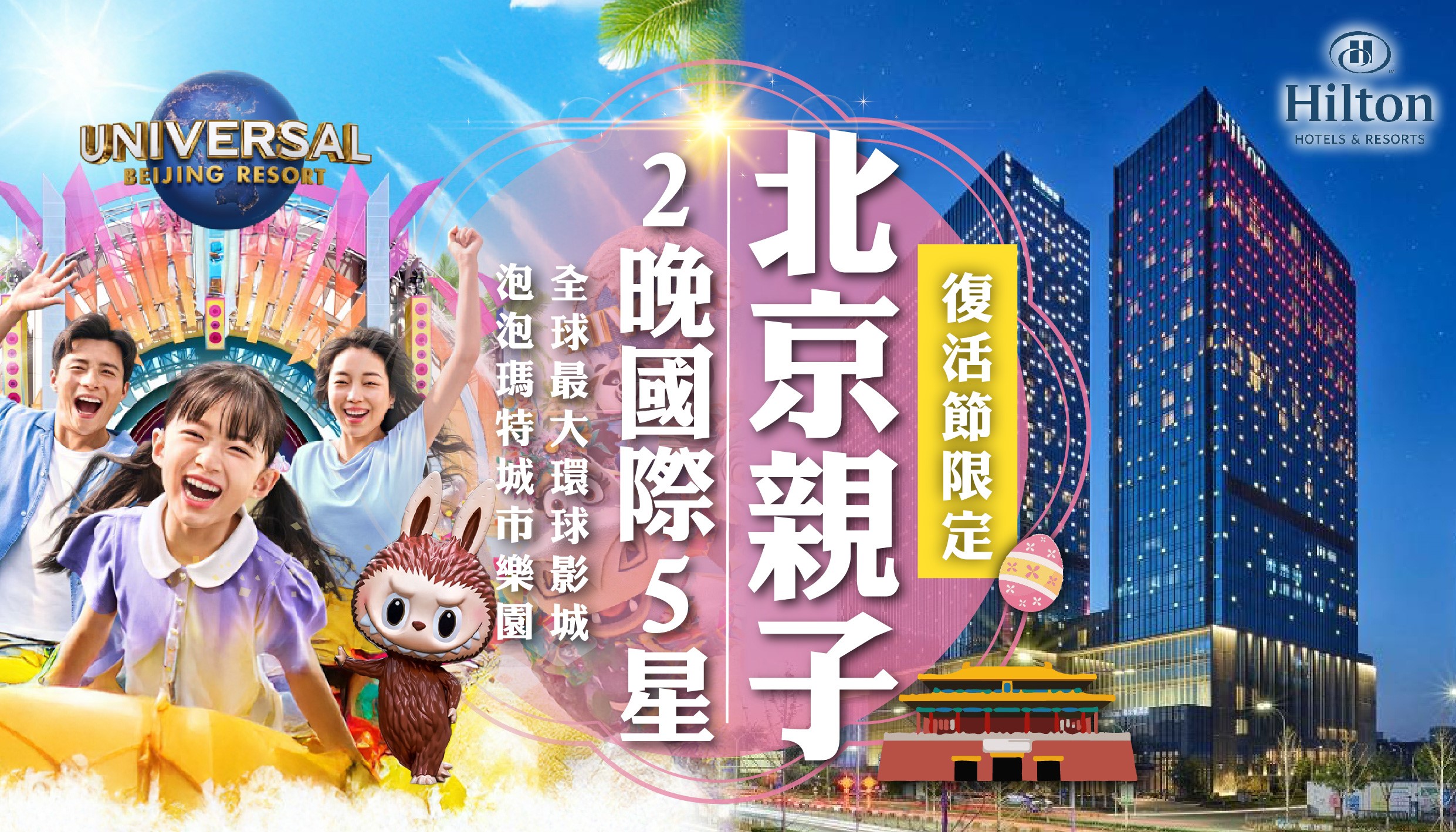 [樂遊首都] 北京2大樂園 [環球影城+LABUBU泡泡瑪特樂園].2大世產 [慕田峪長城纜車+故宮].首都博物館.果園採果親子樂.2晚國際5星通州希爾頓+酒店自助晚餐.3晚25年開幕希爾頓歡朋.老字號峨嵋酒家.北京盛世烤鴨 [絕無自費加遊]