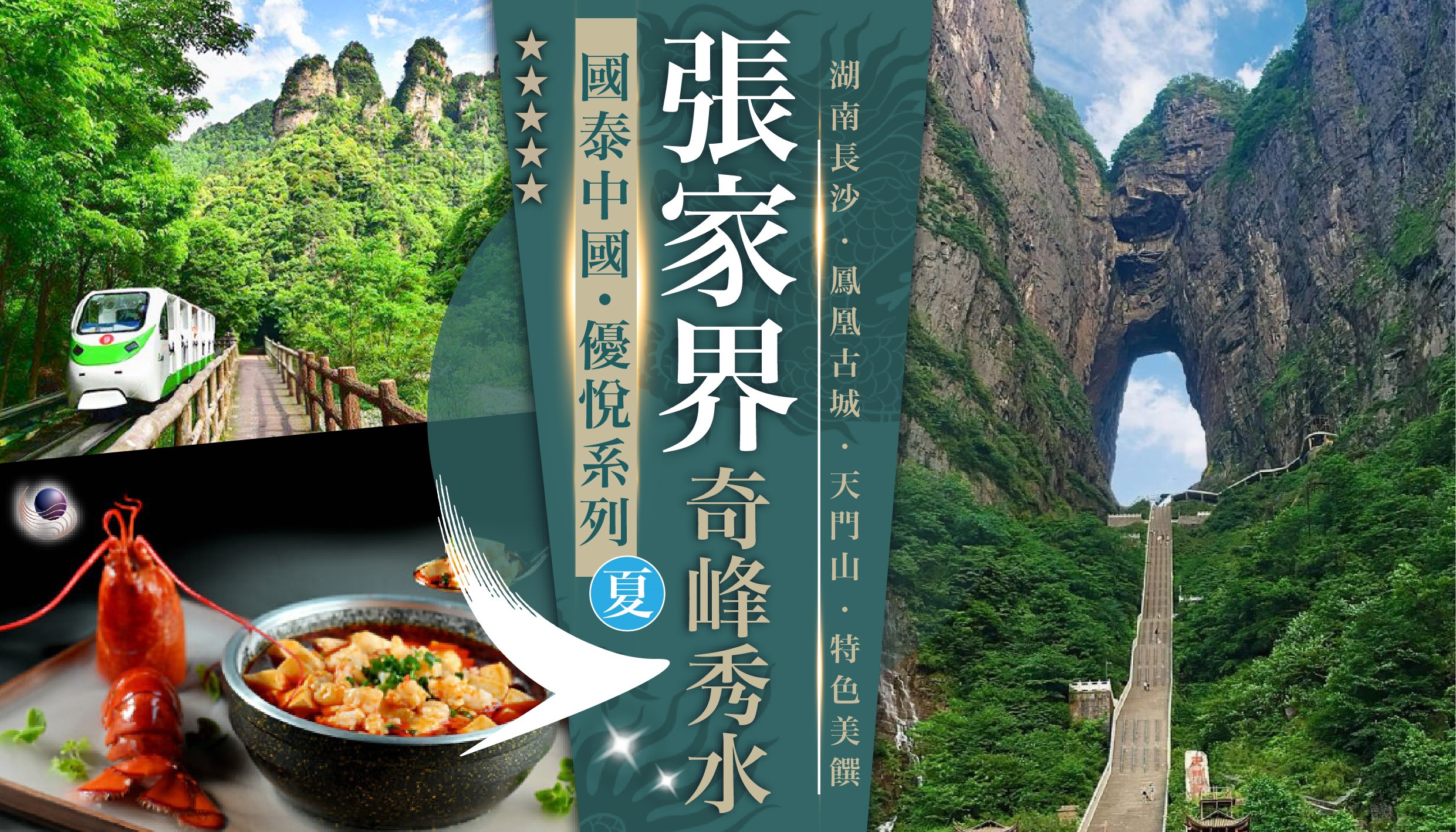 [6天] [湖南優悅] 張家界長沙.鳳凰古城.2大國家公園[張家界+天門山].國泰航空.袁家界+天子山風景區.寶峰湖船遊.十里畫廊小火車.鳳凰古城 [磁浮列車+苗服體驗].國家4A級靖港古鎮.高山流水宴.黑珍珠指南美饌 [徐記海鮮藍麒麟餐廳].全程國際品牌酒店 [絕無自費活動] [全包行程膳食]