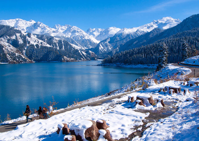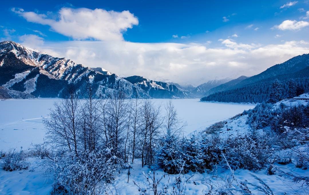 【天山天池.包景區區間車】世界文化遺產,天池湖面結冰,群山被白雪覆蓋