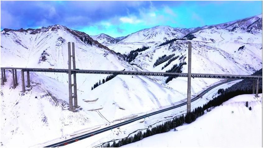 【果子溝大橋】中國最美公路,在峽谷高山欣賞青松映白雪