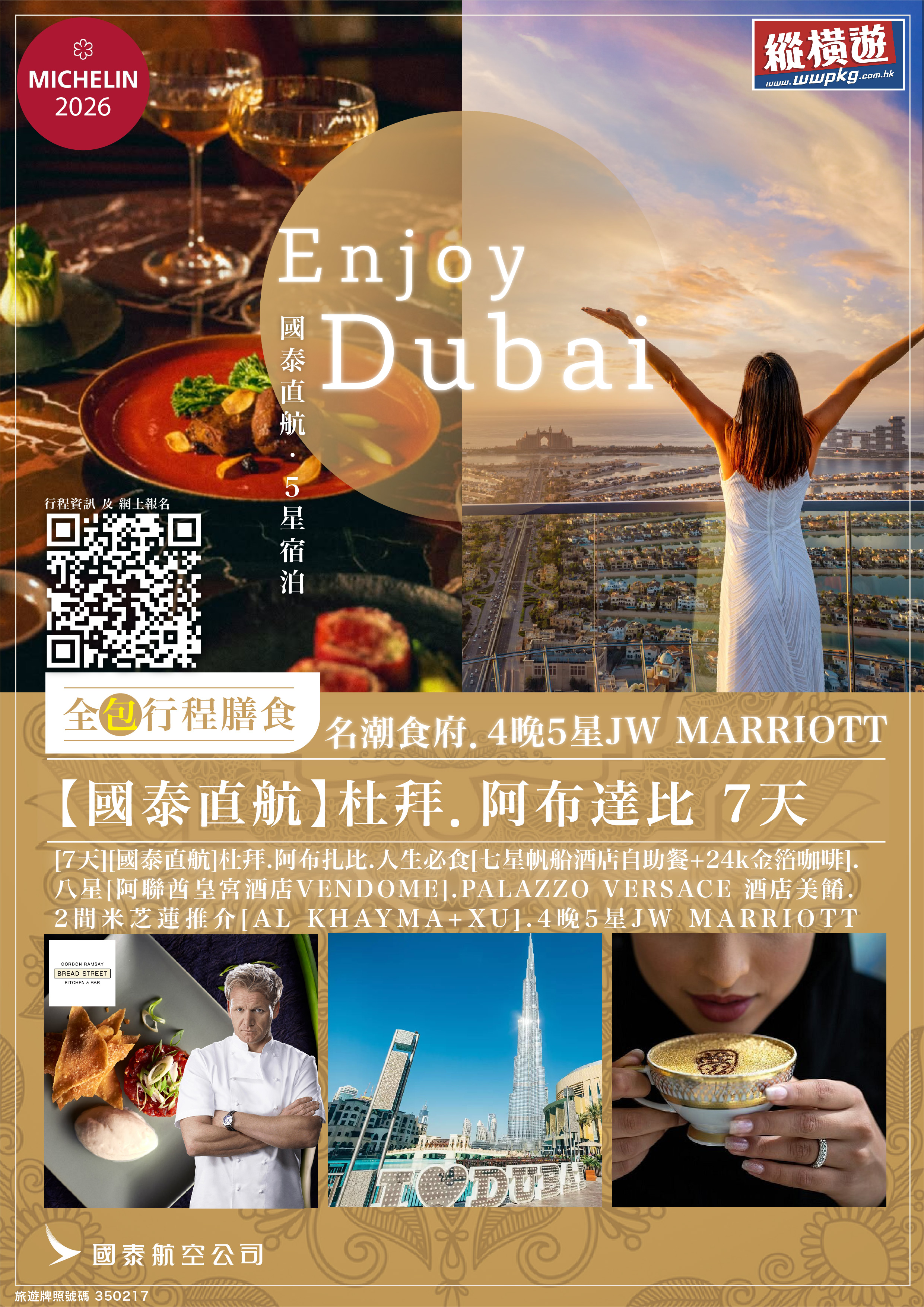 [7天] [識玩識嘆] 國泰航空.杜拜.阿布達比.沙漠四驅車之旅.12大體驗🤩2間米芝蓮「XU栩 + AI KHAYMA阿拉伯料理」.人生必食「七星帆船AIWAN自助餐 + 細味 24K金箔咖啡」.阿聯酋皇宮VENDOME.杜拜灣日落遊船.5星萬豪JW MARRIOTT.只搬1次 [全包行程膳食]