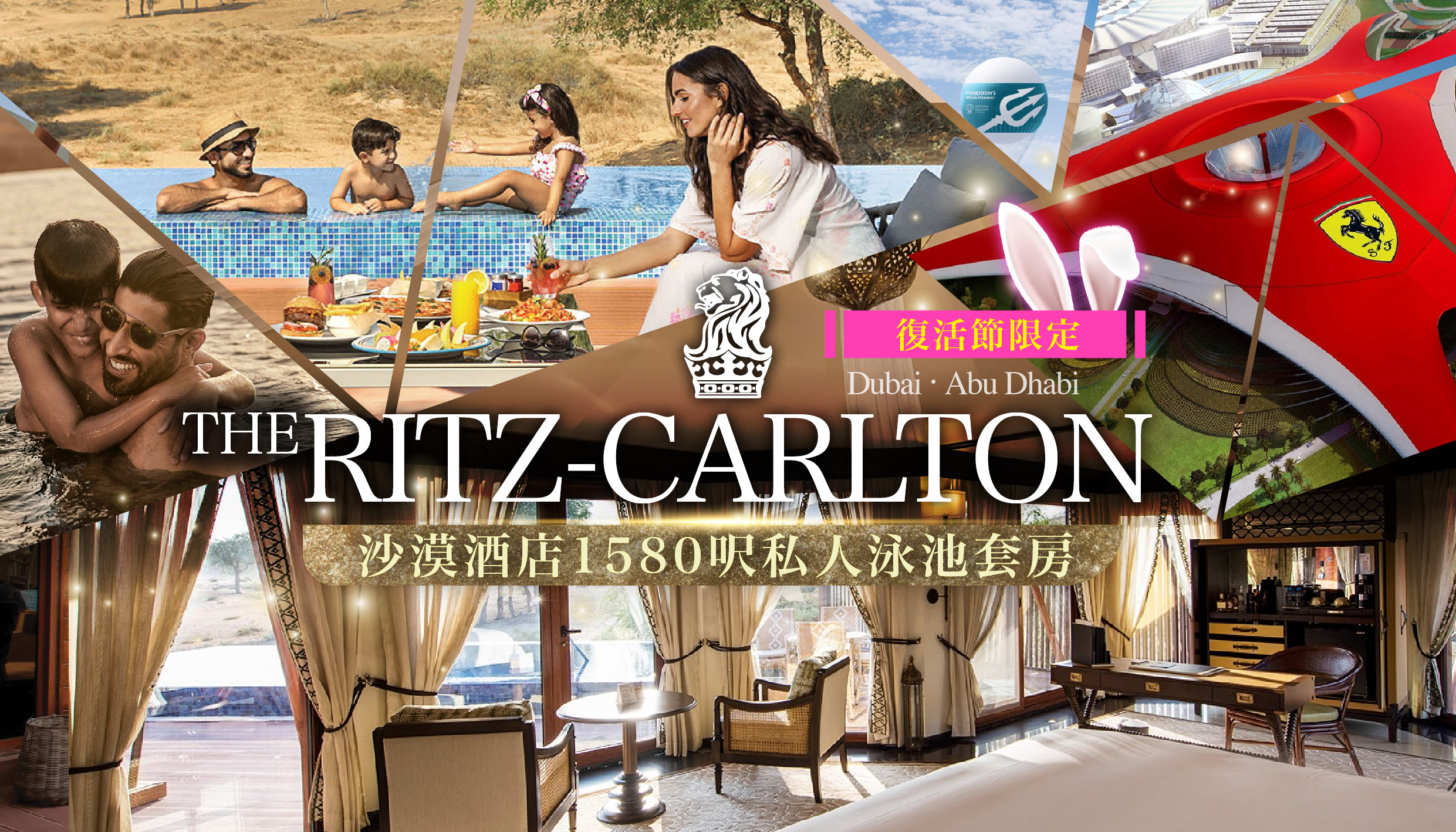 [7天] [5星親子] 杜拜.阿布達比.RITZ CARLTON 沙漠 1580 呎私人VILLA.氣球300米升空體驗.約會大象共進早餐🐘野生獵鷹接觸.GORDON RAMSAY名廚餐廳.七星帆船24K金箔朱古力.3晚杜拜國際5星 JW MARRIOTT [全包行程及膳食]