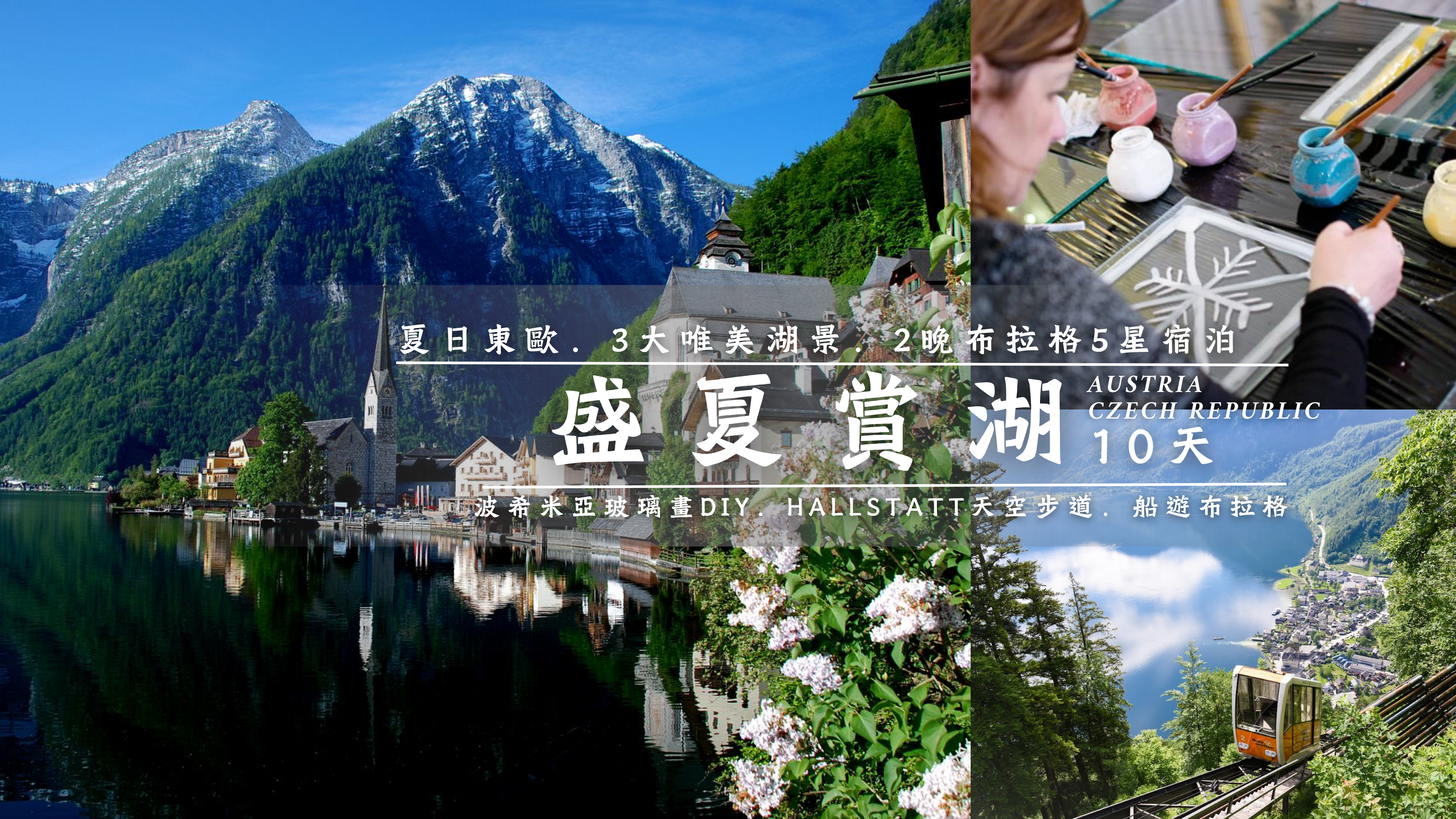 [10天] [盛夏賞湖] 捷克+奧地利.3大湖區 [哈爾施塔特湖.月亮湖.沃爾夫岡湖].3大特色體驗 [古董車漫遊布拉格.HALLSTATT天空步道.波希米亞玻璃畫DIY].3大專業導覽 [美泉宮.皮爾森啤酒廠.薩爾斯堡古城].2晚布拉格 5*藝術酒店LE PALAIS ART [全包行程膳食]