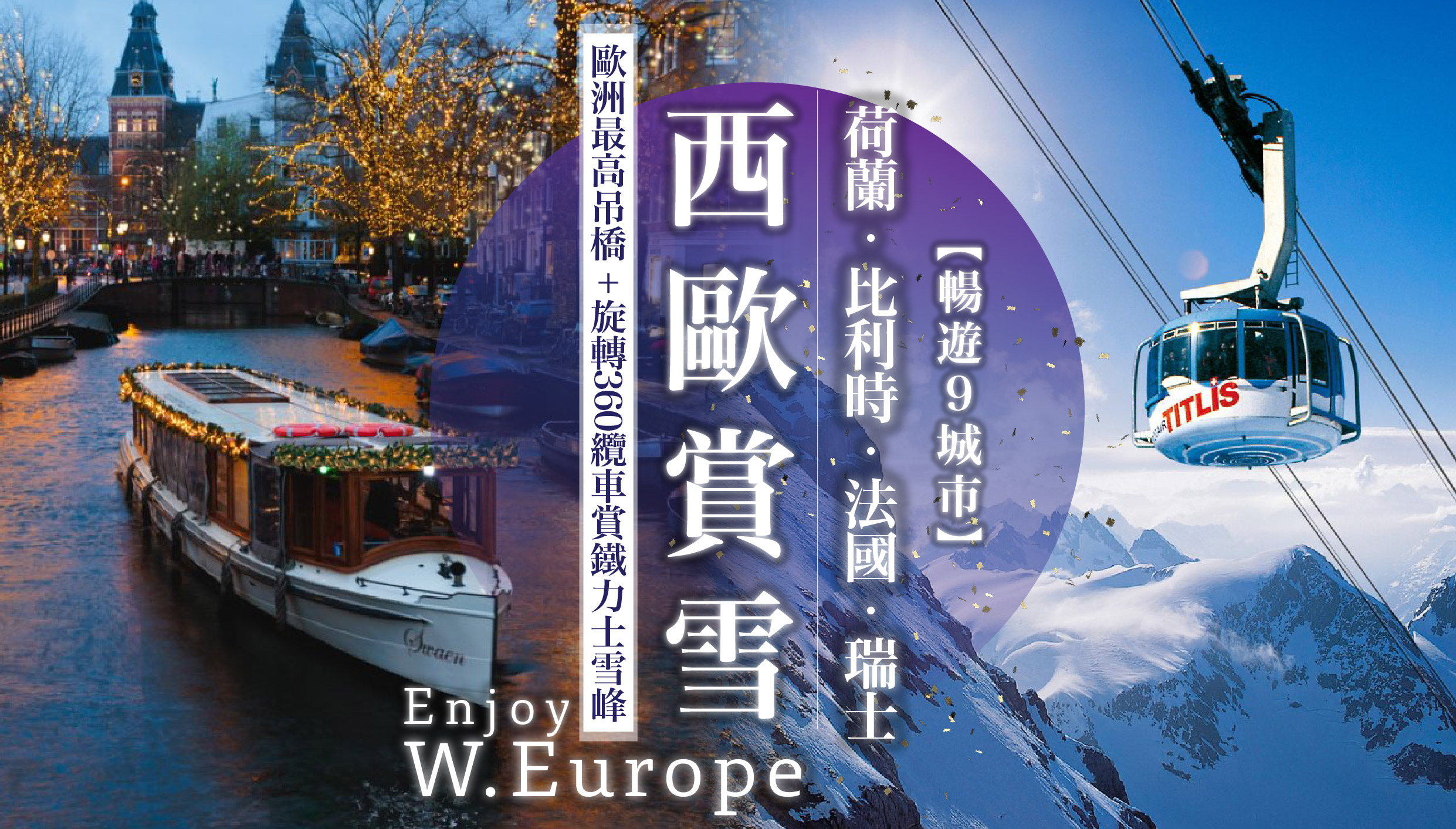 [10天] [冬遊賞雪] 西歐4國「荷蘭.比利時.法國.瑞士」.國泰直航.暢遊9城市🚠歐洲最高吊橋 + 旋轉360纜車賞「鐵力士雪峰」.漫遊花園之都「日內瓦」.玻璃船遊水都運河.連泊2晚巴黎 NOVOTEL.法式香橙鴨 [全包行程]