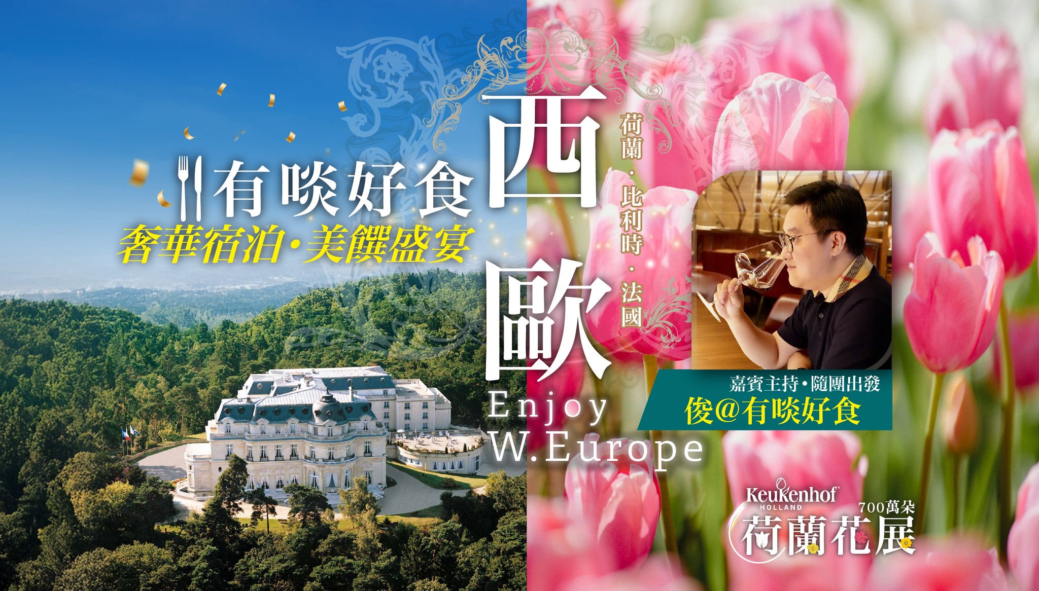 4月22日限定出發:阿俊帶領欣賞荷蘭年度花展,品嚐 3大米芝蓮饗宴,享受法國洲際古堡宿泊