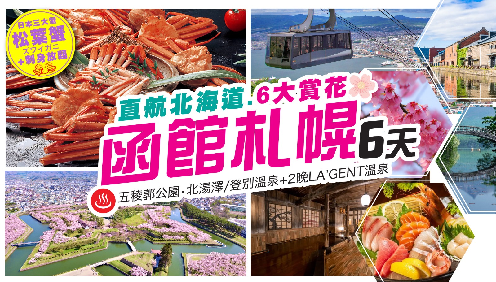 [6天] [春遊函館] 國泰北海道.函館札幌.松葉蟹刺身放題. 2晚函館 LA’GENT 溫泉+北湯澤溫泉.大沼國定公園.米芝蓮名所「函館美景+五稜郭公園+金森紅磚倉庫地」.漫遊小樽.富士羊蹄山.北海道神宮.鶴雅創作料理 DINING.2晚札幌 IBIS⚡[第二位50%OFF.月曆顯示第二位價格]