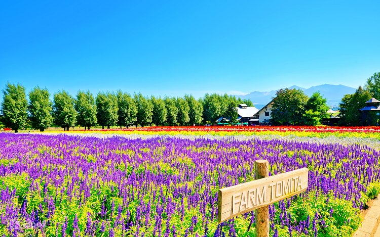 【富良野花海 TOMITA FARM】5月賞福壽草、大山櫻、番紅花、風 信子、鬱金香等;6月賞早開薰衣草、罌粟花、魯冰花等花卉