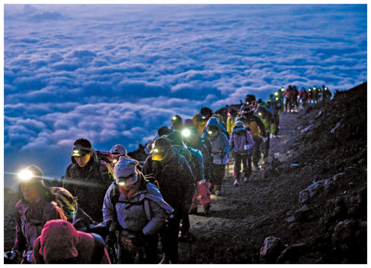 .挑戰日本最高峰富士山 [3,776m] 在每年7月上旬至9月上旬開放,熱門路徑「吉田路線」適合新手,2天1夜並入住本八合目山屋