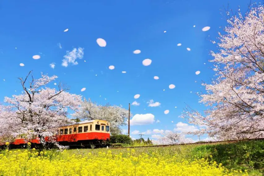 【小湊鐵道】油菜花+櫻花+復古列車 里見站至月崎站,約10分鐘