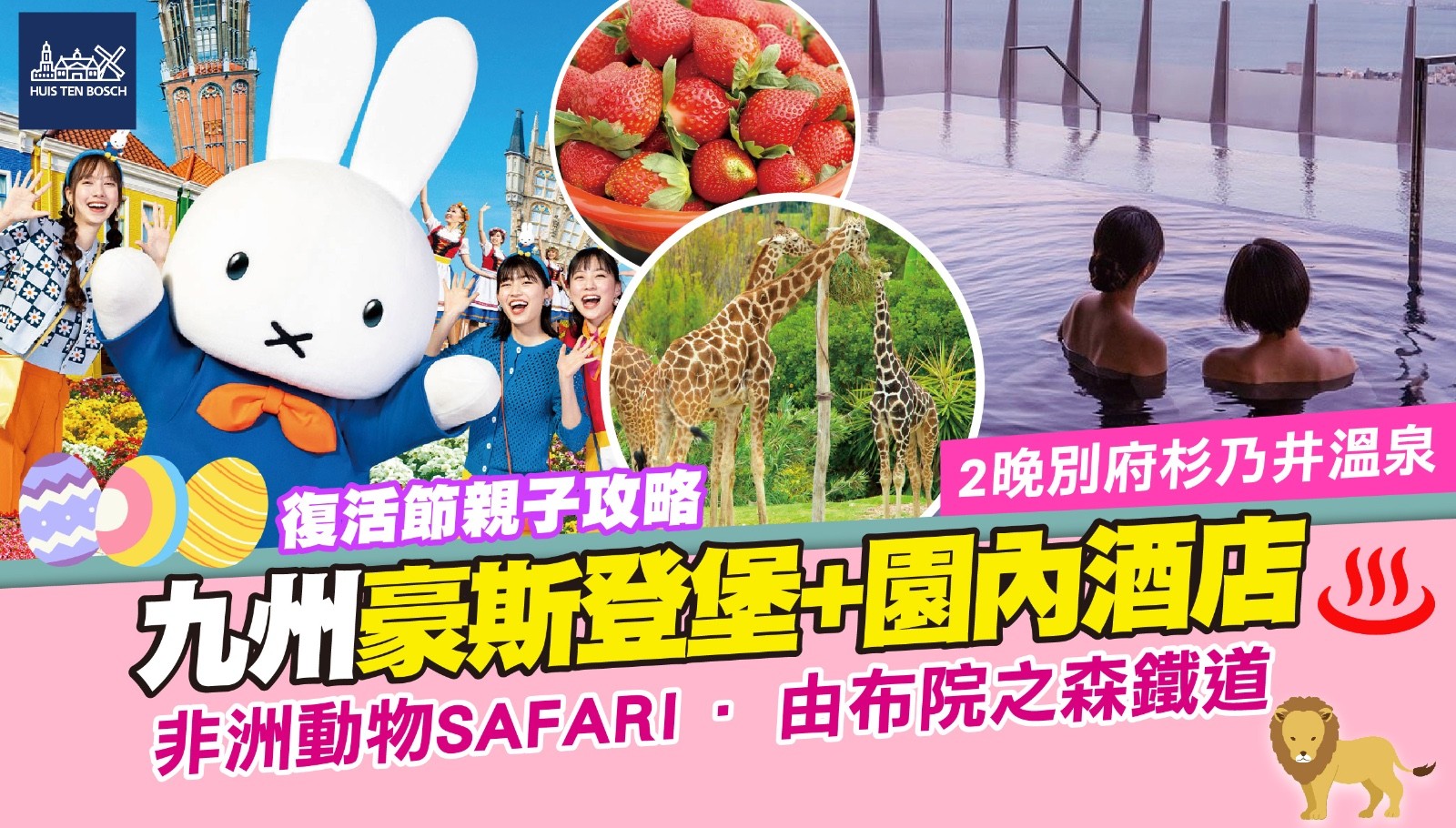 [6天]【九州親子】豪斯登堡 [花與光+Miffy] 園內DENHAAG酒店.2晚別府杉乃井溫泉/ 和藏溫泉.由布院之森鐵道 [ゆふいんの森].非洲動物 SAFARI.士多啤梨園.金麟湖.九十九島遊覽船.佐賀牛創作料理.鬱金香與櫻花.2晚福岡 MONTEREY