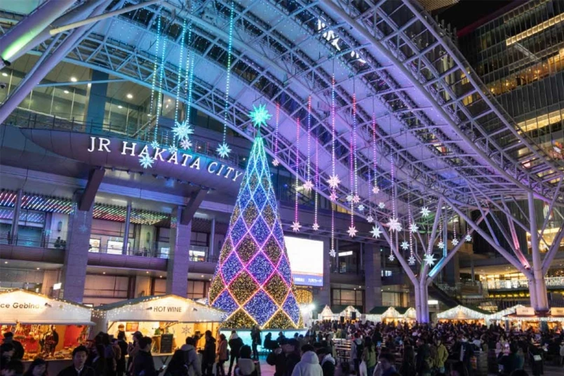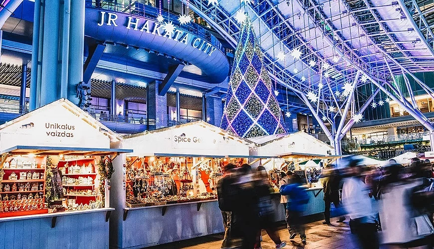 【JR HAKATA CITY 聖誕市集】巨大的聖誕樹、 佈置如小木屋的各個攤位售賣著各款應節商品