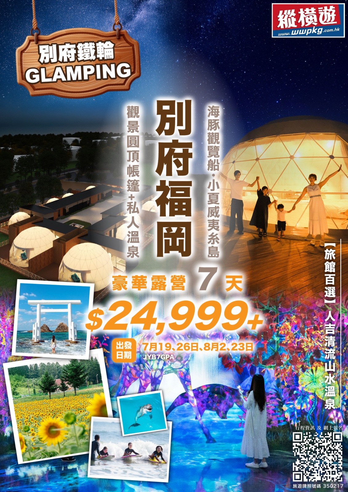[7天] [大自然企劃] 九州福岡.【鐵輪 GRANXIA 私人溫泉 觀景圓頂Glamping】+BBQ 晚餐.熊本天草.宮崎別府. [旅館百選] 人吉清流山水溫泉.衝浪趴板體驗. 海釣公園釣魚體驗.海豚觀覽船.福岡小夏威夷 糸島.[稚加榮] 海鮮會席料理