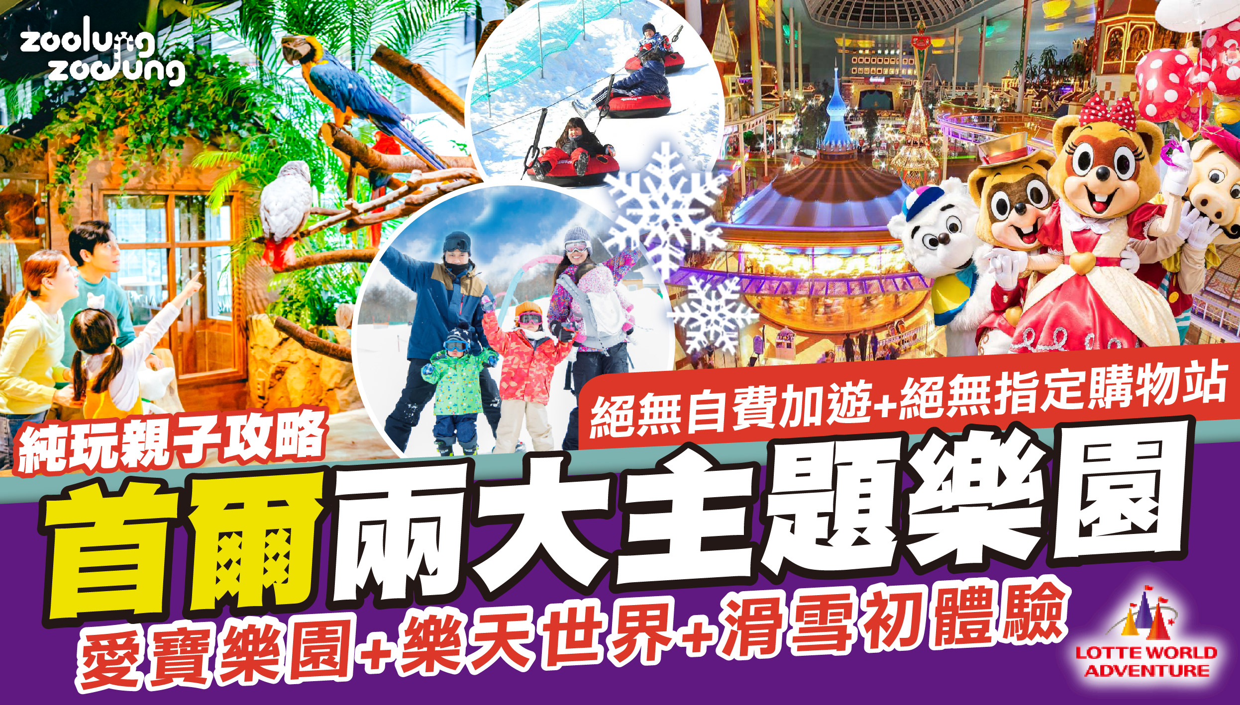 [5天] [純玩親子] 首爾兩大樂園 [愛寶樂園+樂天世界].樂天水族館.親子滑雪初體驗 [包雪具+雪衣].晨靜樹木園 Lighting Festival.士多啤梨農莊.連泊3晚型格酒店+人氣滑雪度假村 [只搬一次]