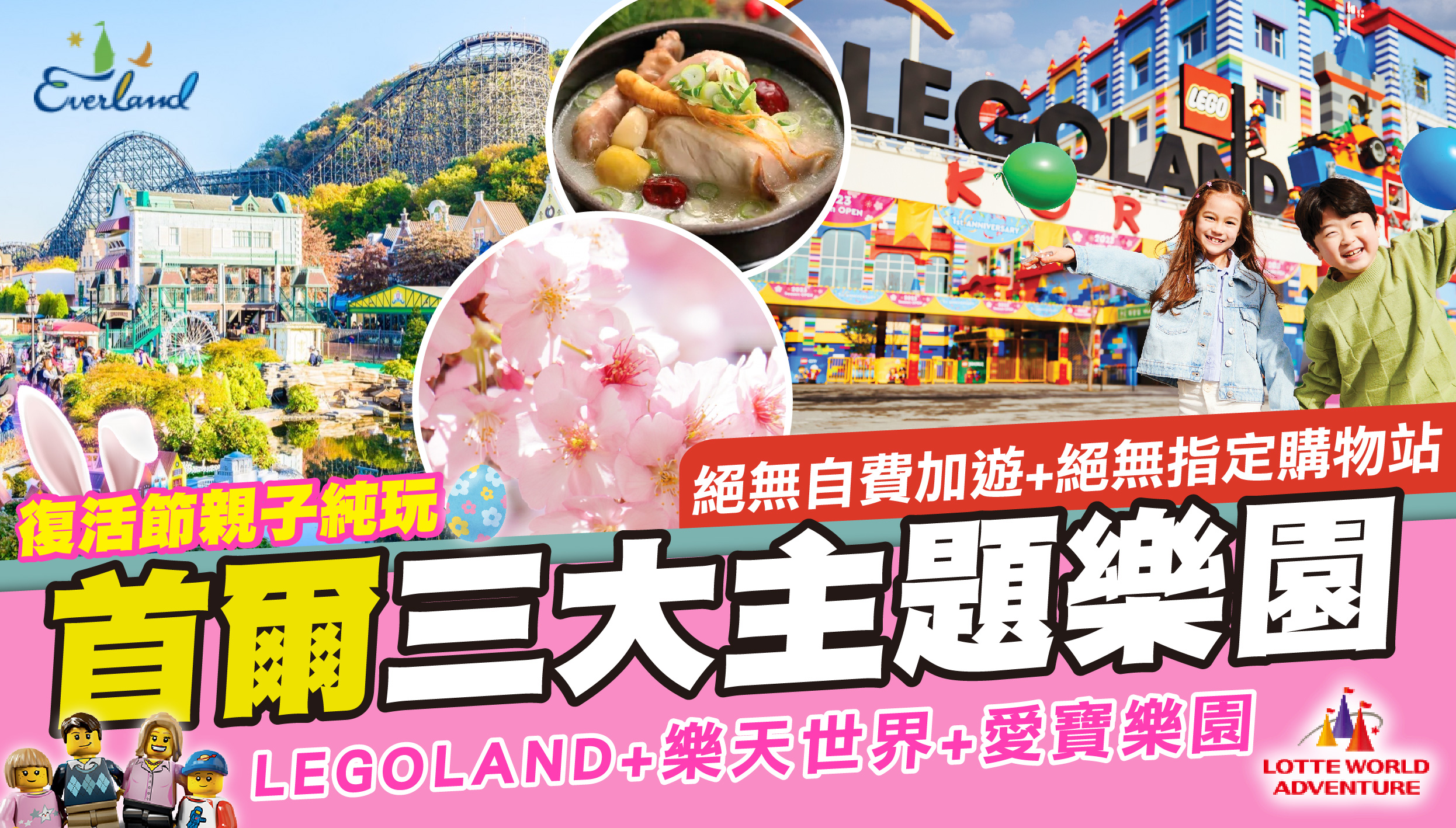 [5天] [復活節親子純玩] 首爾+京畿道.首爾3大樂園 [LEGOLAND+愛寶樂園+樂天世界].[交流的空間] 樂天水族館.[浪漫櫻花] 江村RAIL BIKE.[環湖賞櫻] 石村湖櫻花步道.連泊3晚MARINA BAY [只搬1次] [絕無加遊+指定購物站]