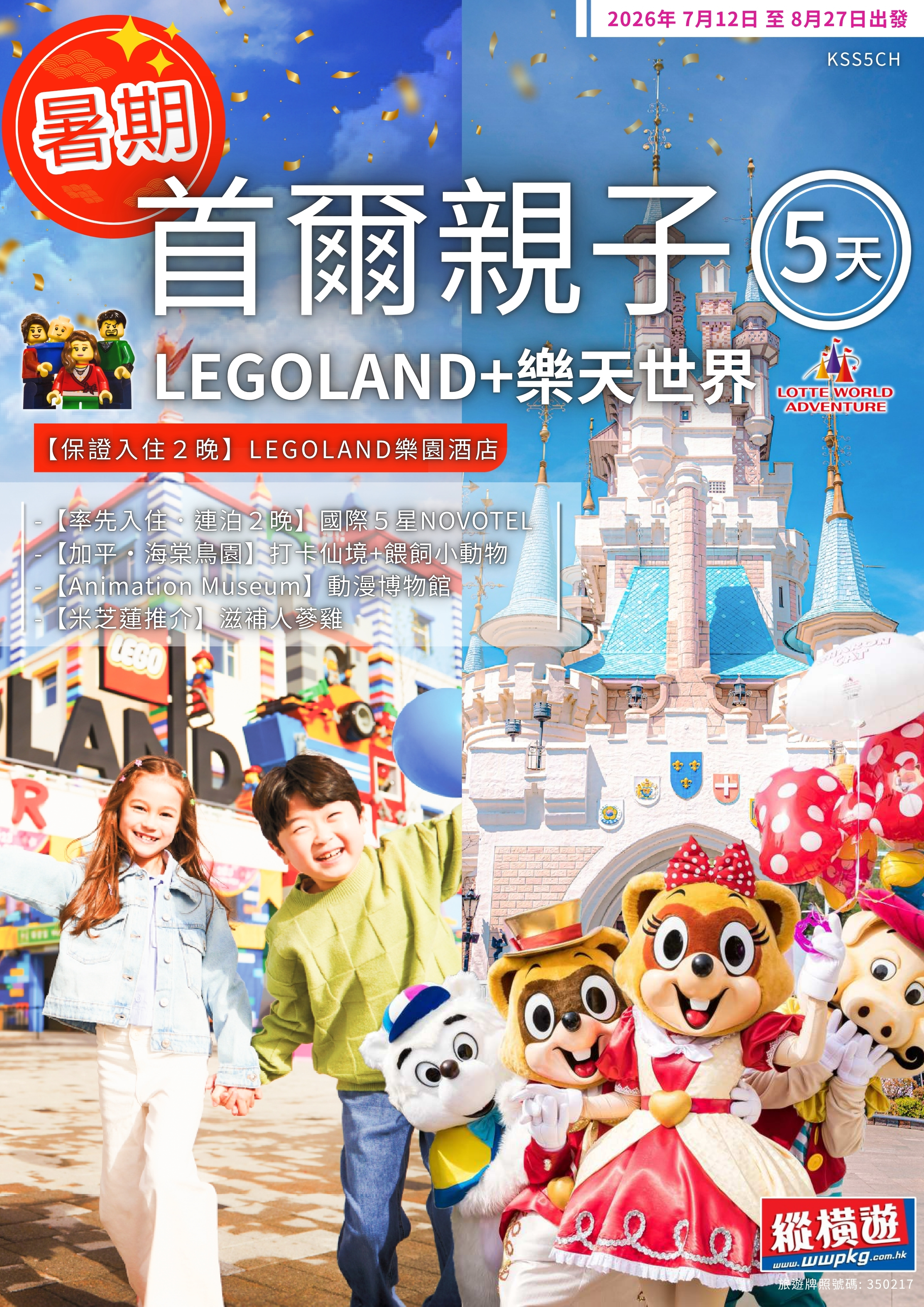 [5天] [親子住靚啲!] 江原道+首爾.國泰早機親子.[保證入住2晚] LEGOLAND ®KOREA RESORT.[人氣樂園] LEGOLAND.樂天世界+樂天水族館.海棠鳥園餵飼動物.QOOQOO 壽司自助餐.2晚國際5星NOVOTEL.絕無自費加遊