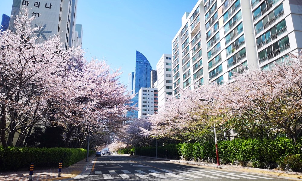 【釜山八景之一】海雲臺迎月路櫻花大道
