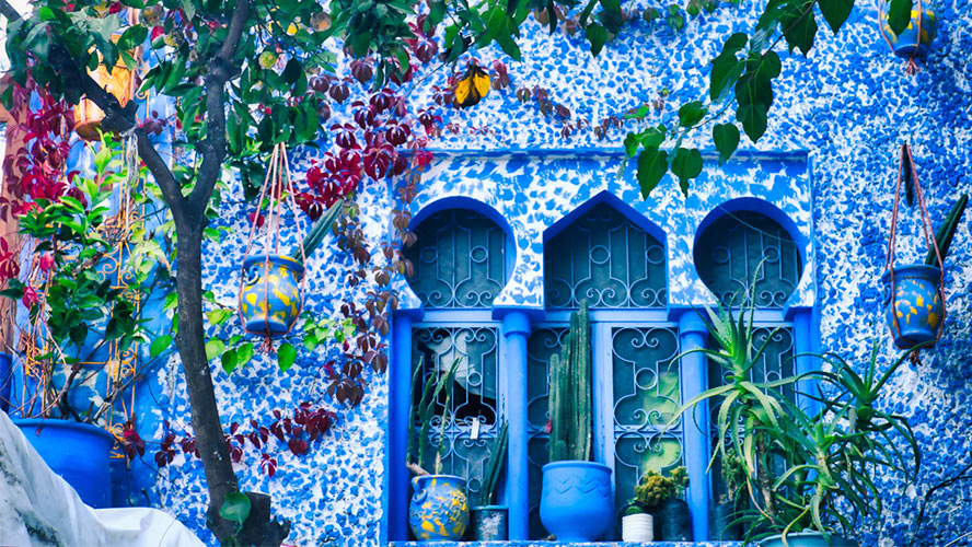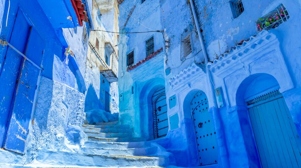 走訪千年古城菲斯,走在迷宮般的麥地那舊城;馬拉喀什則投入一千零一夜的阿拉伯世界,走入「浪漫藍色山城」舍夫沙萬,沉醉於一片夢幻的藍海,