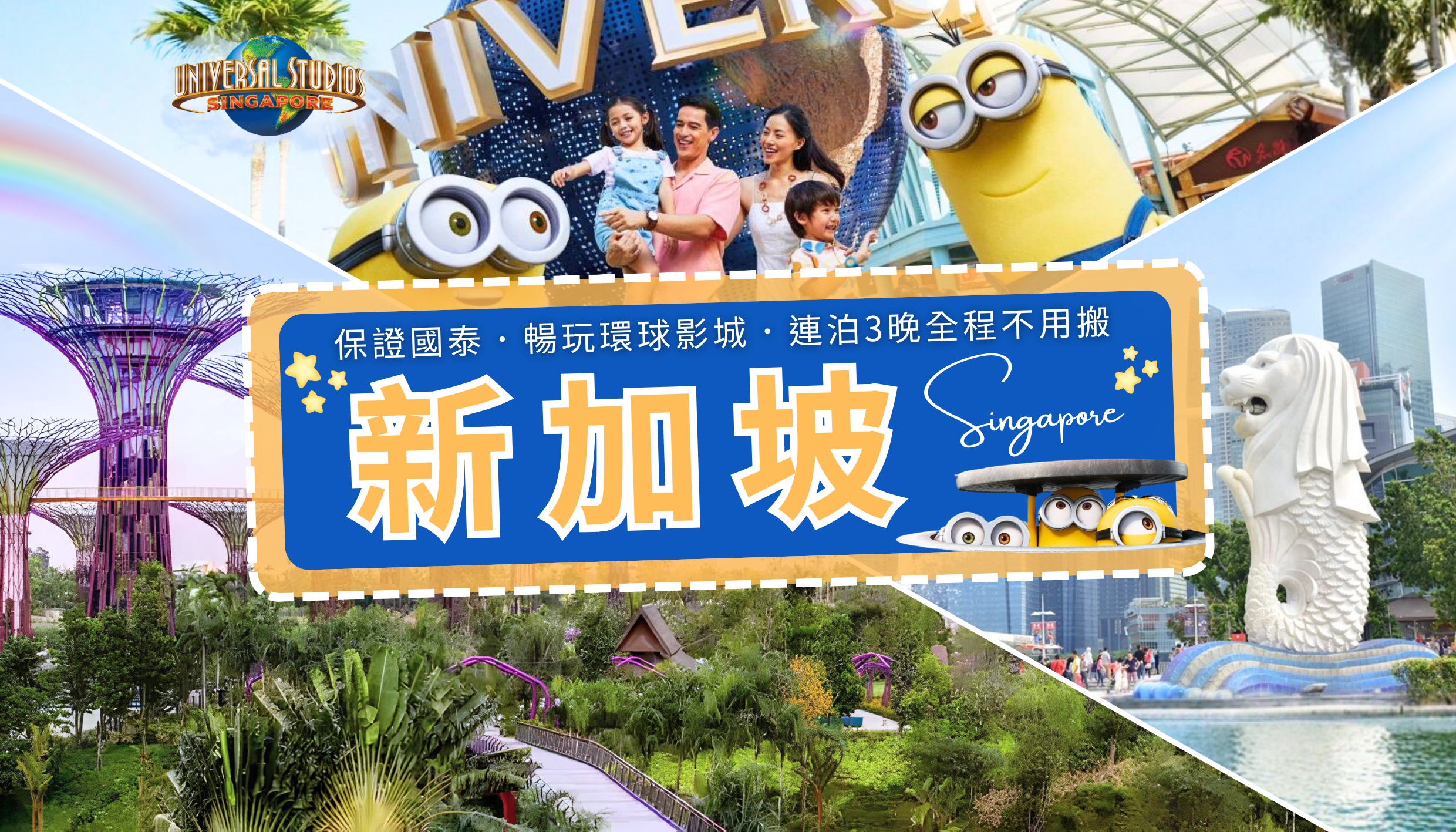 [4天] [新加坡] [保證國泰早機] [東南亞首座] 環球影城(包任玩套票).[標誌性地標] 魚尾獅公園.濱海灣花園(侏羅紀世界+雲霧林).[新加坡蘭桂坊] 克拉碼頭¦南洋美食巡禮.[米芝蓮推介] 松發肉骨茶¦全程4星酒店不用搬