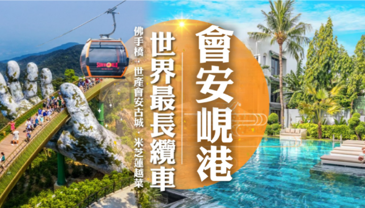 [5天] [度假勝地] 越南峴港.[巴拿山] 世界最長纜車.TIME評選最美 [黃金佛手橋].世界最大 [龍橋] + 愛情橋.迦南島筲箕船+表演.夜遊世界文化遺產 [會安古城] 遊船.山茶半島.米芝蓮 Madame Lan 越南菜.連泊4晚不用搬 [絕無指定購物站]