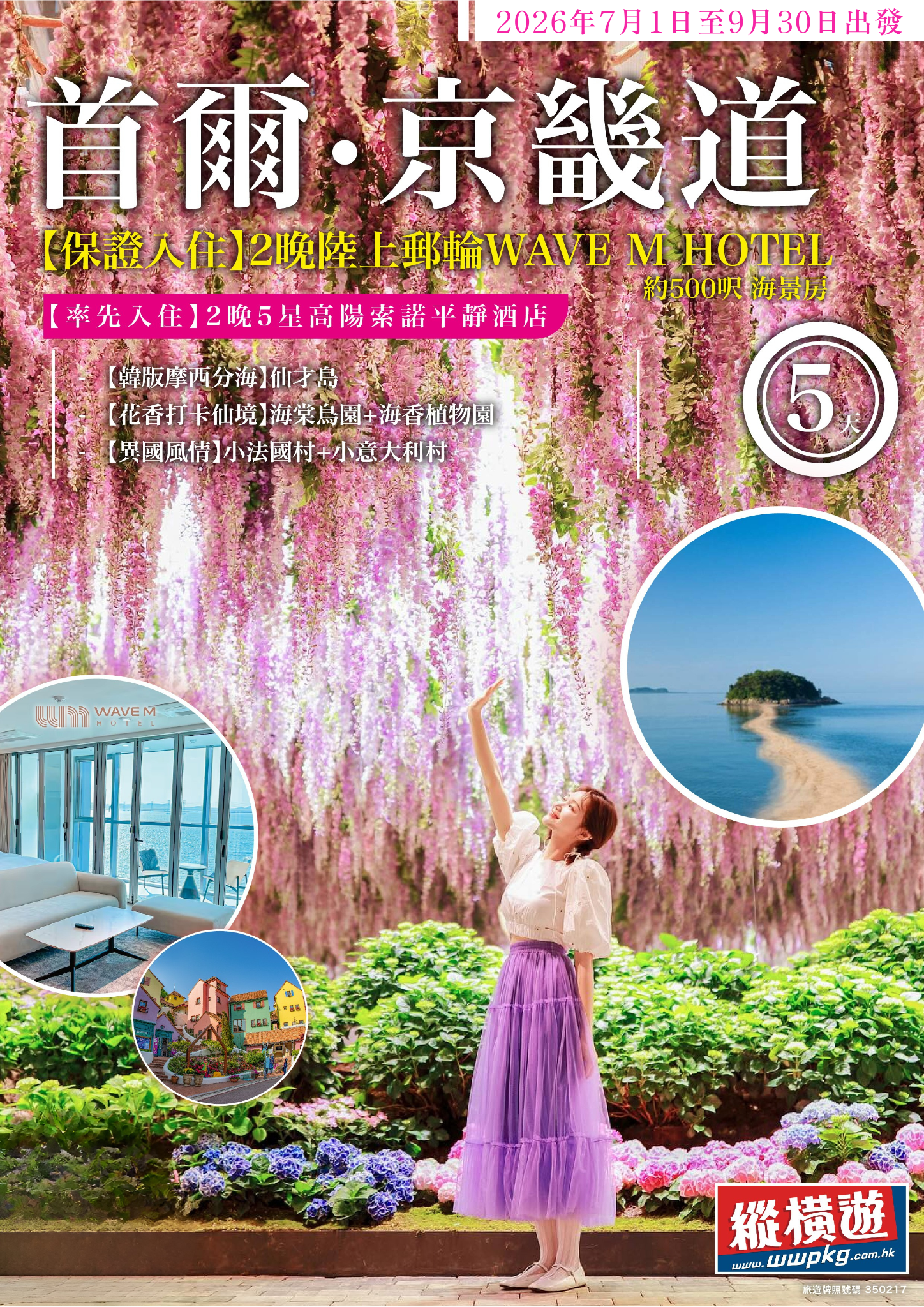 [5天] [國泰早機] 首爾+京畿道.[保證入住] 陸上郵輪WAVE M 500呎海景房.[摩西分海] 仙才島.[花香仙境] 海棠鳥園.[歐陸風情] 法 國村.[花花世界] 海香植物園.水原STARFIELD星空圖館2.0.率先入住高陽Sono Calm 5星酒店 [只搬1次] 絕無自費加遊